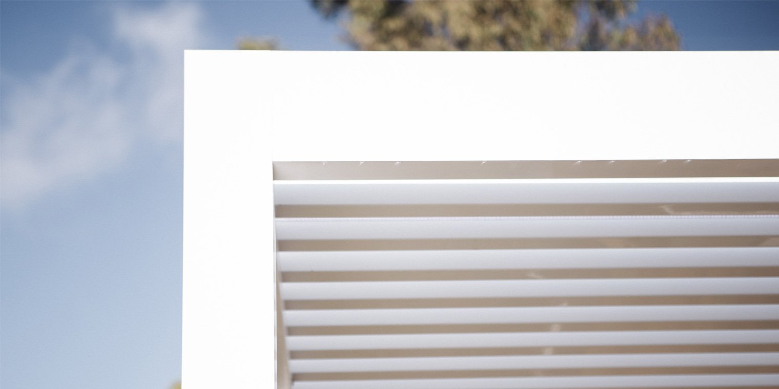 Pérgola bioclimática con lamas orientables motorizadas. Controla luz, sombra y ventilación. Protección contra lluvia. Diseño minimalista en aluminio. Múltiples opciones de instalación.